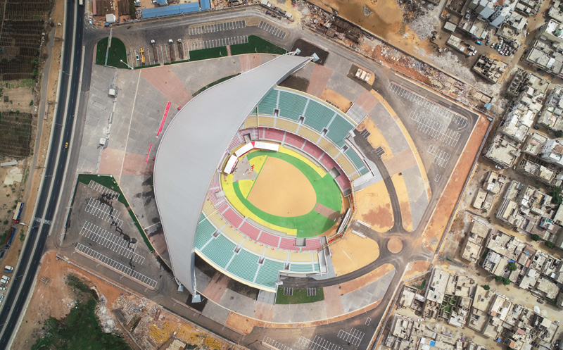 这是2018年7月18日在塞内加尔首都达喀尔拍摄的中国援建的竞技摔跤场(无人机照片)。新华社记者 吕帅 摄
