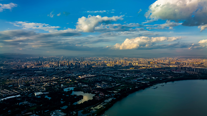 空中俯瞰雨后的昆明市区(无人机照片,5月27日摄)。新华社记者 江文耀 摄