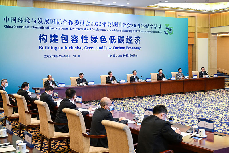 6月16日,中共中央政治局常委、国务院副总理、中国环境与发展国际合作委员会主席韩正在北京出席国合会2022年年会暨国合会30周年纪念活动。新华社记者 饶爱民 摄