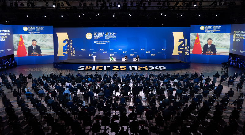 第二十五届圣彼得堡国际经济论坛全会于6月17日在俄罗斯圣彼得堡以线上线下结合方式举行。俄罗斯总统普京、埃及总统塞西、哈萨克斯坦总统托卡耶夫等出席。