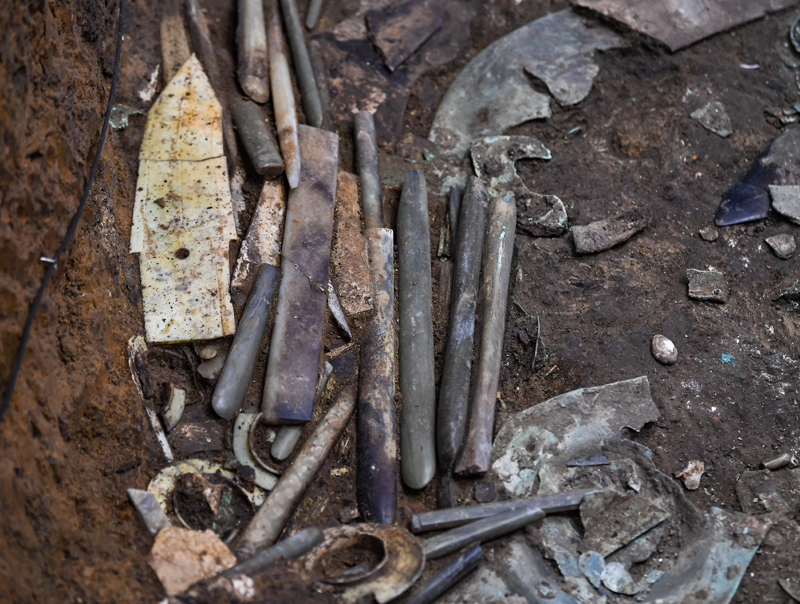 这是在三星堆遗址7号“祭祀坑”拍摄的玉器(6月1日摄)。新华社记者 王曦 摄