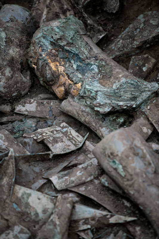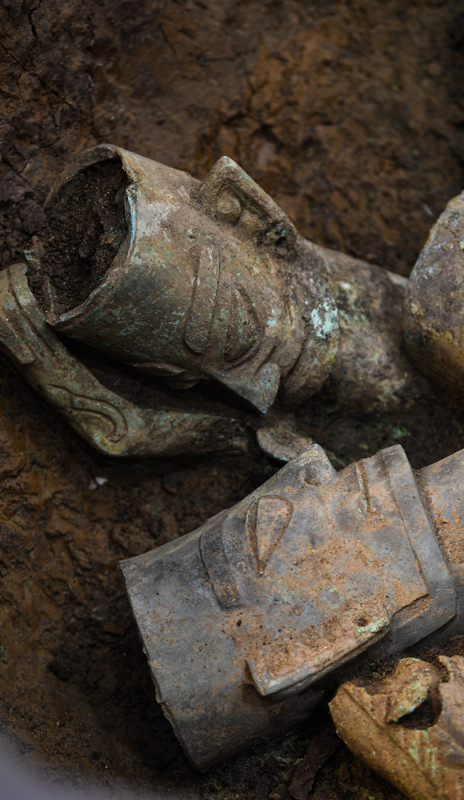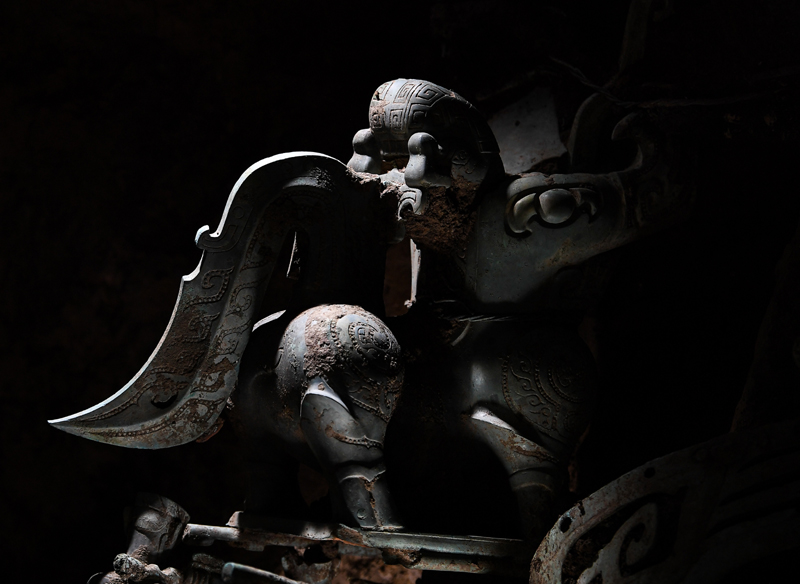 这是在三星堆遗址8号“祭祀坑”拍摄的铜神兽(6月1日摄)。新华社记者 王曦 摄