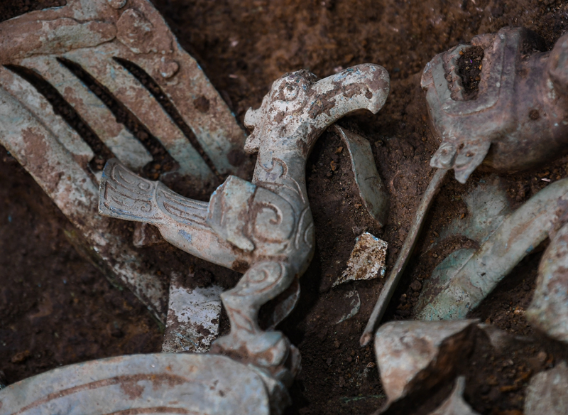 “7号、8号‘祭祀坑’新发现的器物,丰富了三星堆遗址的铜器类别,呈现出更加丰富的种类和文化内涵,体现了中华文明的多样性和丰富性。”四川省文物考古研究院三星堆考古研究所所长冉宏林说。