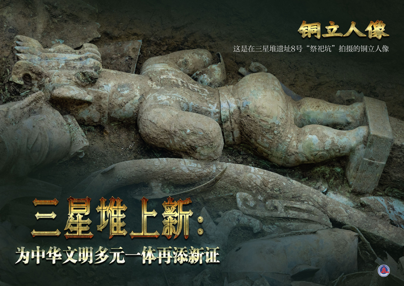 冉宏林告诉记者:“铜人像具有古蜀文明的特征,方座铜器是先周文化的代表,尊是中原文化的代表。这三种文化因素集合到同一件器物上,生动地体现出三星堆是中华文明的重要组成部分。”