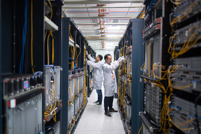 6月2日,在位于湖北省武汉市的烽火通信科技股份有限公司5G承载实验区,技术人员在进行功能测试工作。新华社记者 肖艺九 摄