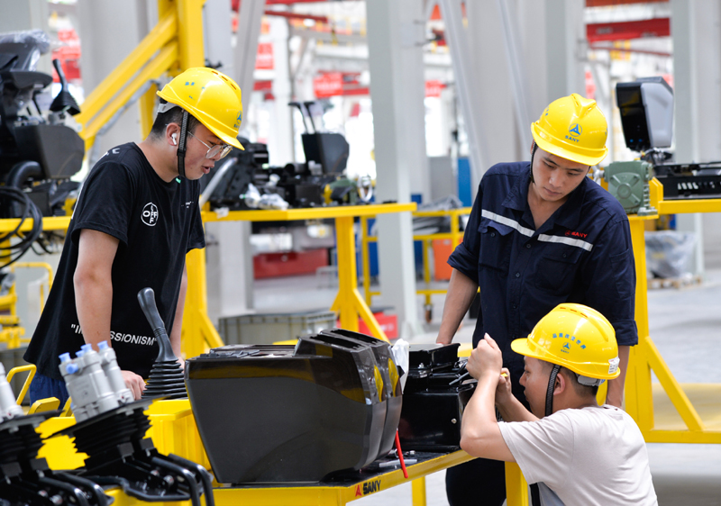 工人在位于重庆两江新区的三一集团西南地区首个智能化“灯塔工厂”项目内作业(2021年7月19日摄)。新华社记者 徐钦 摄