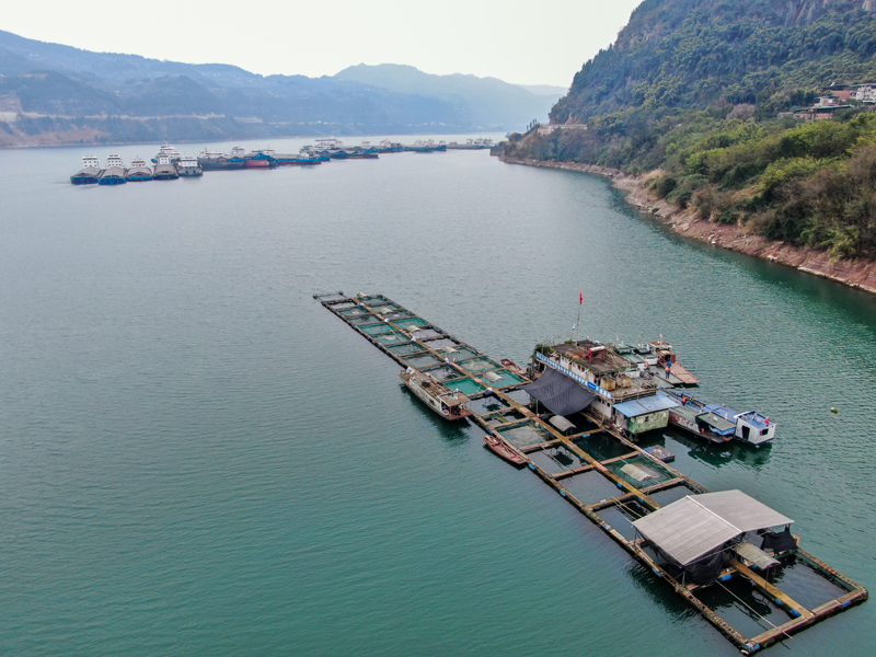 这是2022年2月25日拍摄的三峡库区珍稀鱼类驯养基地(无人机照片)。新华社记者 唐奕 摄