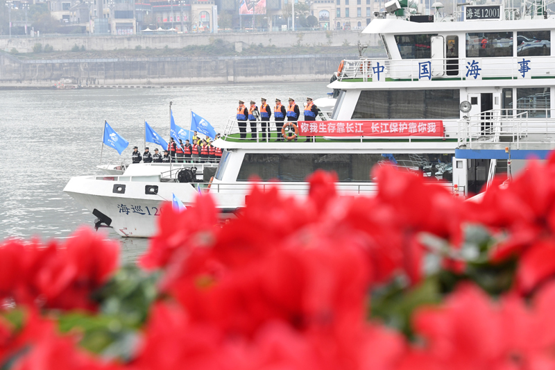 长江流域重点水域“十年禁渔”全面启动活动(重庆分会场)在重庆江北嘴执法船舶码头举行(2020年12月31日摄)。新华社记者 唐奕 摄