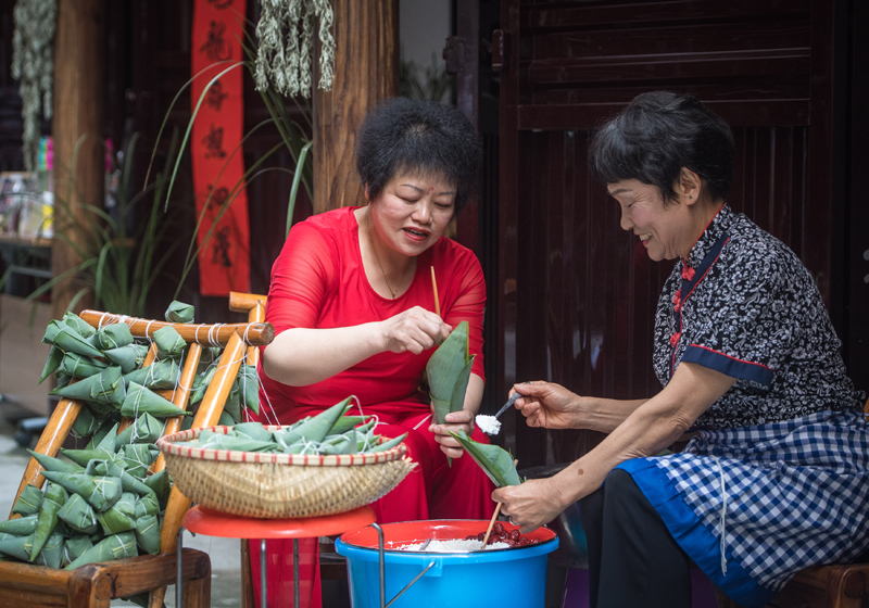 屈原故里湖北省宜昌市秭归县的居民在包粽子(2021年6月11日摄)。新华社记者 肖艺九 摄