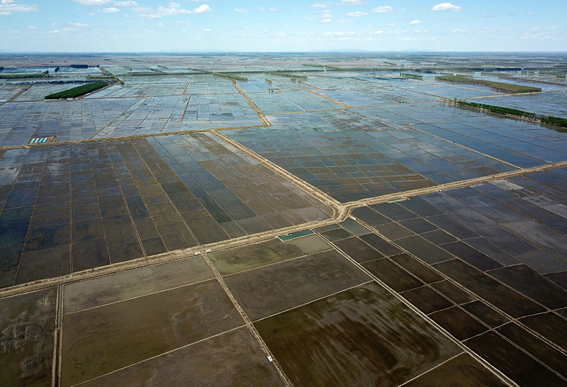 这是5月18日拍摄的北大荒集团七星农场有限公司的稻田(无人机照片)。新华社记者 王建威 摄
