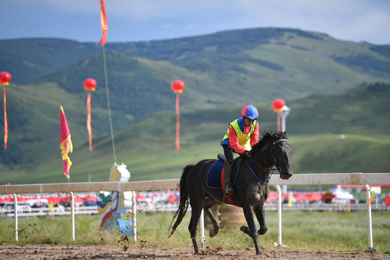 牧民在兴安盟那达慕参加赛马比赛(2020年8月9日摄)。新华社记者 贝赫 摄
