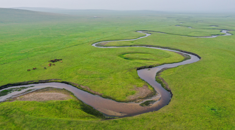 这是内蒙古锡林郭勒盟东乌珠穆沁旗乃林高勒的草原风光(2021年7月12日摄,无人机照片)。新华社记者 连振 摄