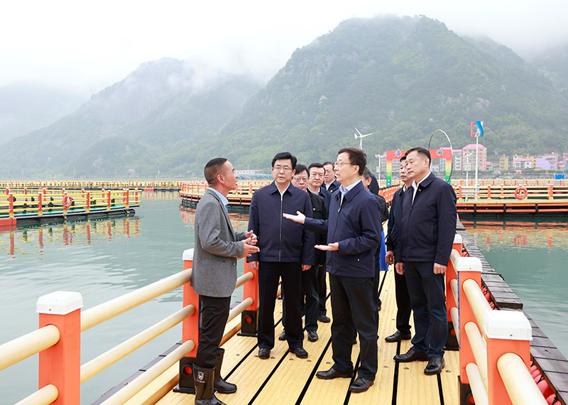5月23日至24日,中共中央政治局常委、国务院副总理韩正在福建宁德、福州、漳州调研。这是5月23日,韩正在福安“蓝海渔歌”海上综合整治展示平台调研。新华社记者 丁林 摄