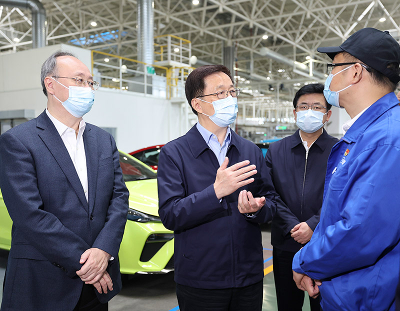 5月23日至24日,中共中央政治局常委、国务院副总理韩正在福建宁德、福州、漳州调研。这是5月23日,韩正在上汽乘用车福建分公司调研。新华社记者 丁林 摄