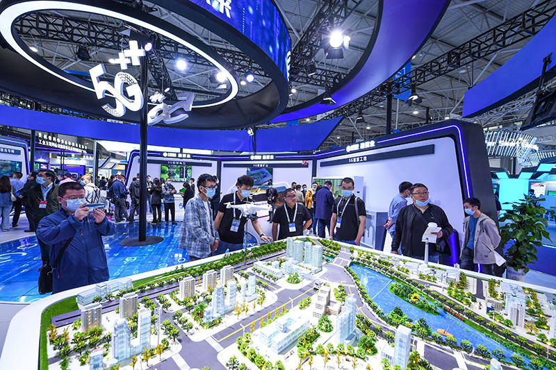 参会者在2021中国国际大数据产业博览会上参观5G智慧城市模型(2021年5月26日摄)。新华社记者 杨文斌 摄