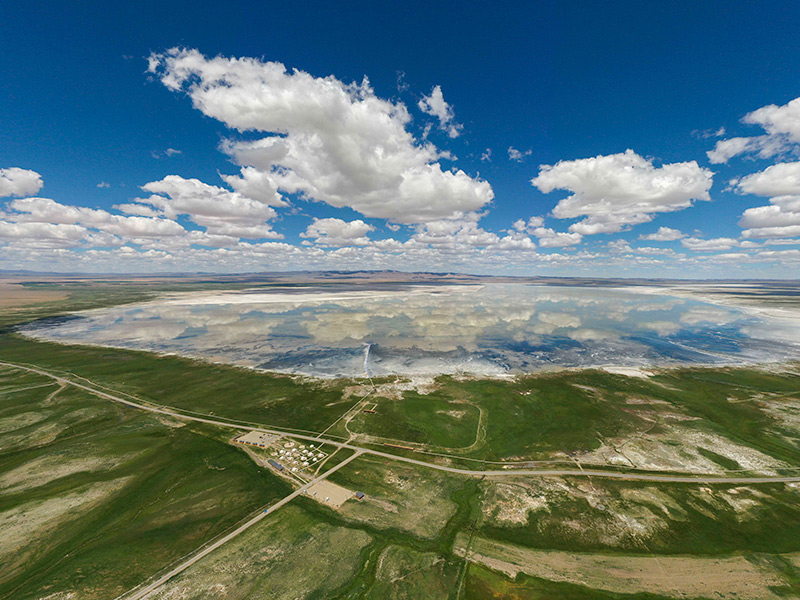 这是新疆哈密市巴里坤湖风光(2021年7月1日摄,无人机照片)。新华社记者 胡虎虎 摄