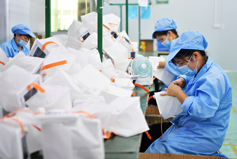 5月14日,在福建省泉州市鲤城区一家太阳能灯具企业,工人在生产线上赶制出口订单。新华社记者 魏培全 摄