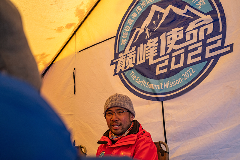 当日凌晨3点,科考队员从珠峰海拔8300米的突击营地开始冲顶。他们在海拔8830米处,架设了世界海拔最高自动气象站,并在8848.86米的巅峰,利用高精度雷达测量冰雪厚度。任务一个接一个顺利完成,珠峰大本营“巅峰使命”总指挥会议室帐篷里,见证这一盛举的科学家和工作人员的掌声、喝彩声,一次比一次响亮。