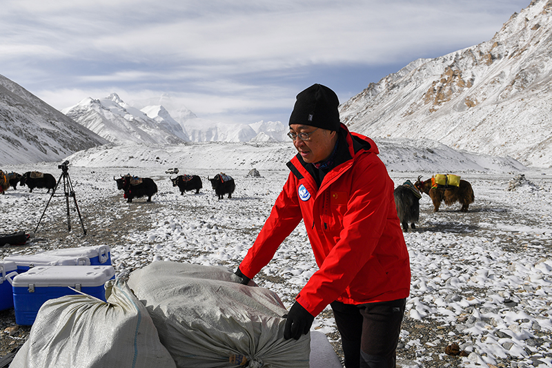 4日,中国科学院西北生态环境资源研究院研究员康世昌从大本营出发,目的地是海拔6350米的东绒布冰川前进营地,他的任务是利用先进的仪器,探查发生在珠峰冰川上的厘米级乃至肉眼不可见的微观世界。