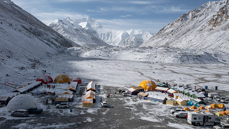 这是珠峰登山大本营(5月1日摄,无人机照片)。新华社记者 孙非 摄