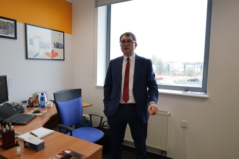4月20日,波兰瑞亚物流公司总经理莫伟杰在弗罗茨瓦夫接受新华社记者采访。新华社记者 陈琛 摄