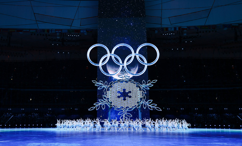 2022年2月4日,第二十四届冬季奥林匹克运动会开幕式在北京国家体育场举行,这是开幕式上的“构建一朵雪花”环节。新华社记者 曹灿 摄
