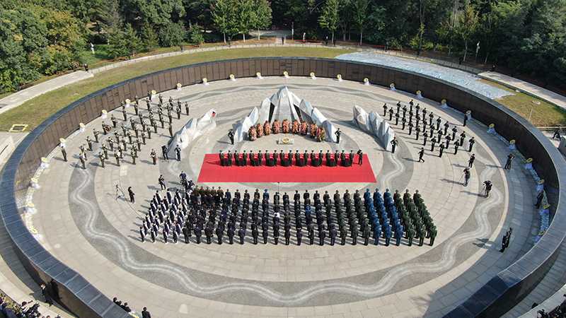 2020年9月28日,第七批在韩中国人民志愿军烈士遗骸安葬仪式在沈阳抗美援朝烈士陵园举行(无人机照片)。新华社记者 杨青 摄