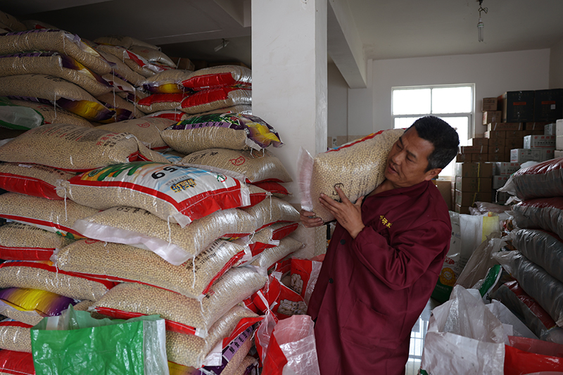 云南省曲靖市会泽县的一家农资销售人员入库春耕生产种子(3月26日摄)。新华社发(李荣山 摄)