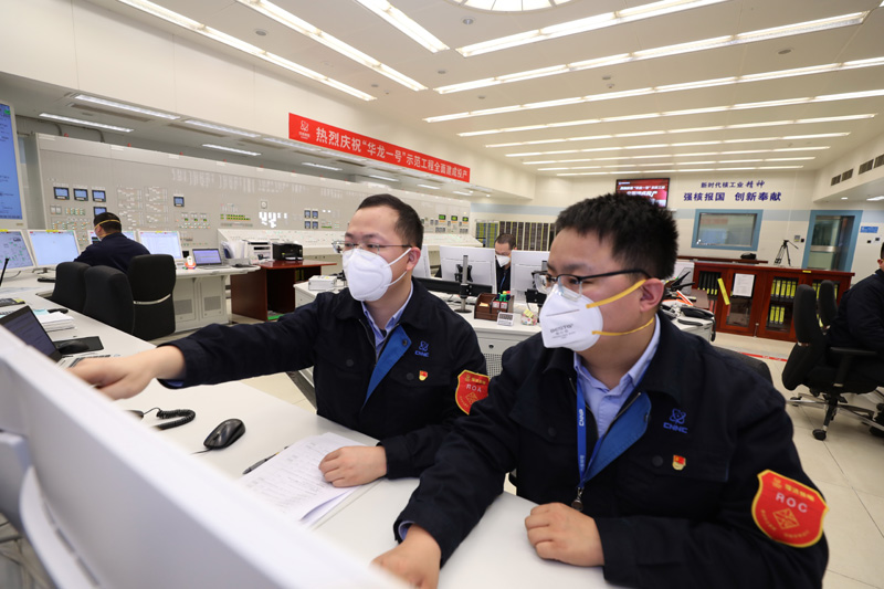 3月25日,工作人员在“华龙一号”示范工程福清核电6号机组主控室工作。新华社发