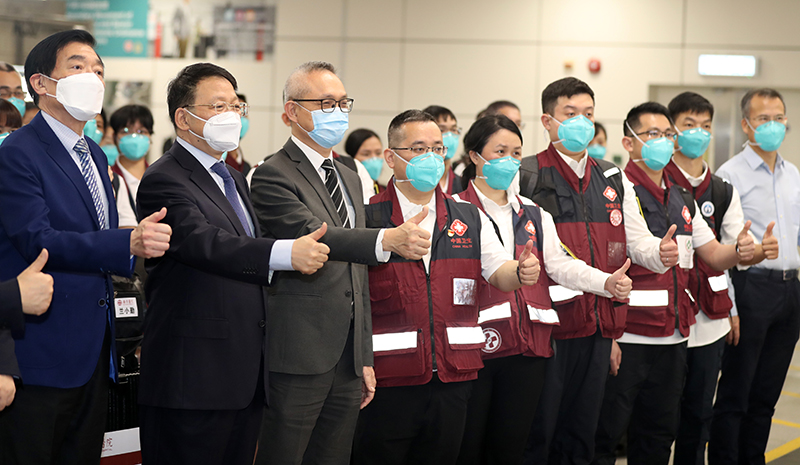 徐德义代表特区政府对队员们的到来表示欢迎。他表示,香港第五波疫情十分严峻,需要防止大量病人发展成为重症,医护人员不足成为抗疫工作的瓶颈。75位有经验的内地医护人员来港支援,可以有效提升亚博馆社区治疗设施的服务规模,让病人得到更好照顾,有力支援香港抗疫。