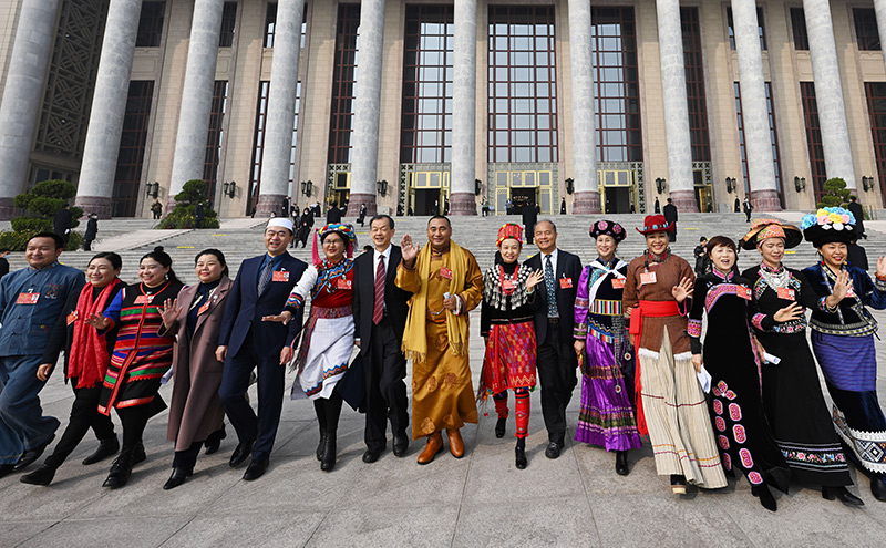 3月10日,中国人民政治协商会议第十三届全国委员会第五次会议在北京人民大会堂闭幕。这是闭幕会后,委员们走出人民大会堂。新华社记者 金良快 摄