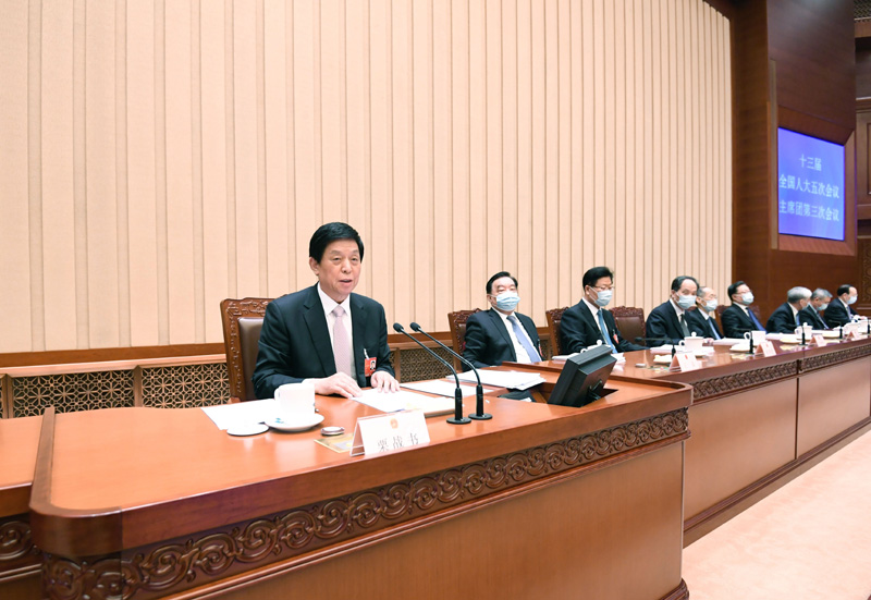 3月10日,十三届全国人大五次会议主席团在北京人民大会堂举行第三次会议。主席团常务主席栗战书主持会议。新华社记者 申宏 摄