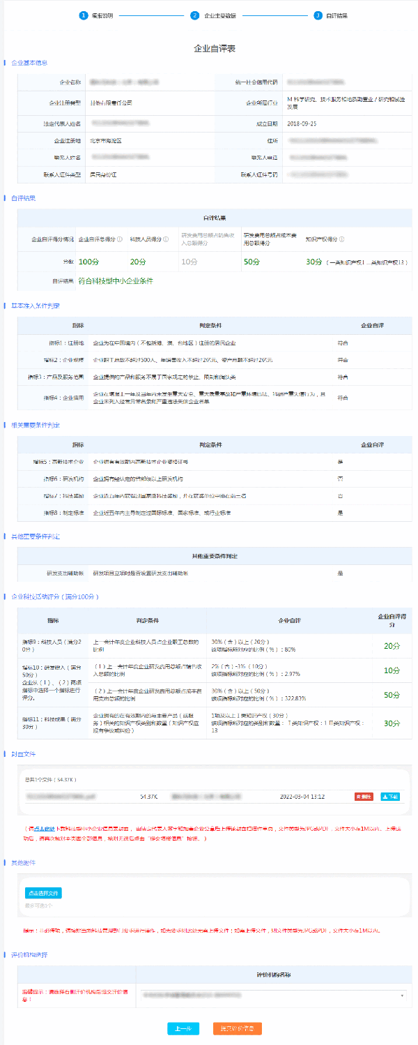 企业填报信息和证明文件齐全且自评结果符合科技型中小企业条件的企业可提交《信息表》,并应同时上传有法定代表人签名和加盖企业公章的《信息表》首页原件。