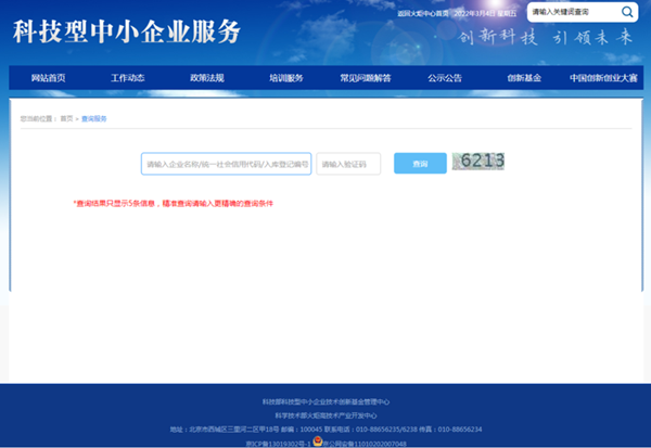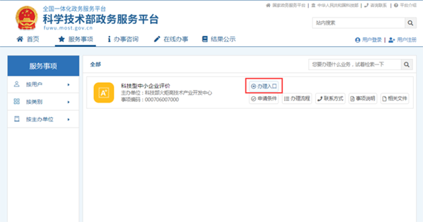 打开浏览器,搜索“科学技术部政务服务平台”,点击“热点服务”中的【科技型中小企业评价】。
