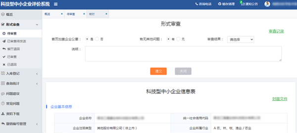 信息审核通过的,系统提交至省级科技主管部门。