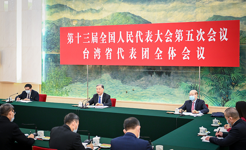 3月9日,中共中央政治局常委、全国政协主席汪洋参加十三届全国人大五次会议台湾代表团的审议。新华社记者 翟健岚 摄 新华社北京3月9日电 中共中央政治局常委、全国政协主席汪洋9日上午参加十三届全国人大五次会议台湾代表团审议。在听取陈军、符之冠、梁志强等代表发言后,汪洋指出,过去一年,在以习近平同志为核心的党中央坚强领导下,对台工作有为有效、稳中有进。当前世界百年变局加速演进,台海方向不确定不稳定性增多,但时、势、义始终在我们这一边,我们有应对各种复杂局面的综合实力和必胜信心。要贯彻新时代党解决台湾问题的总体方略和党中央对台工作决策部署,树牢底线思维,发扬斗争精神,坚持一个中国原则和“九二共识”,坚决反对“台独”分裂行径,坚决反对外部势力干涉,扎实推动两岸关系和平发展、融合发展。两岸同胞要把握历史大势,坚守民族大义,多谋增进同胞福祉之策,多做加强交流合作之事,多为促进心灵契合之举,携手共促祖国统一大业、民族复兴伟业。 |