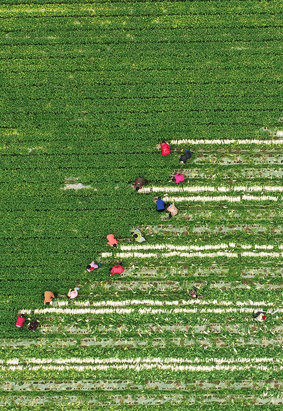 2月28日,在四川省南充市蓬安县锦屏镇中坝社区,村民在地里劳作(无人机照片)。新华社发(刘永红 摄)