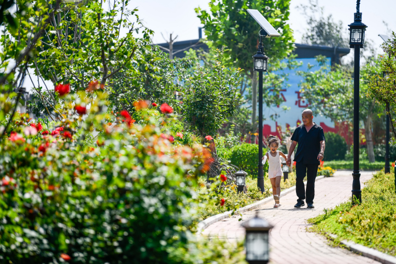 村民在河北省唐山市丰南区胥各庄镇蛮子坨村内休闲(2021年8月27日摄)。新华社记者 牟宇 摄