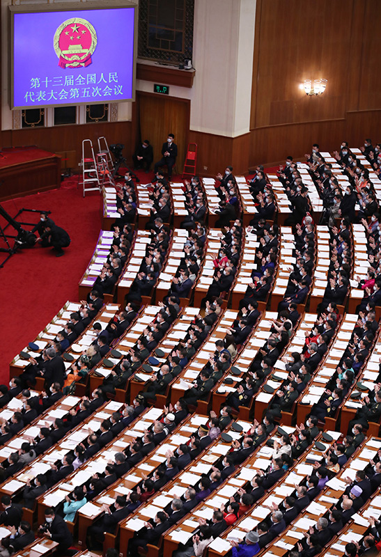 3月8日,十三届全国人大五次会议在北京人民大会堂举行第二次全体会议。新华社记者 金立旺 摄
