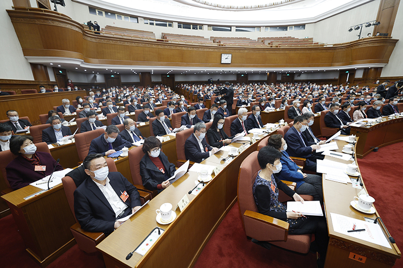 3月7日,全国政协十三届五次会议举行视频会议。会议在全国政协机关设主会场,在委员驻地设分会场。这是主会场。新华社记者 殷博古 摄