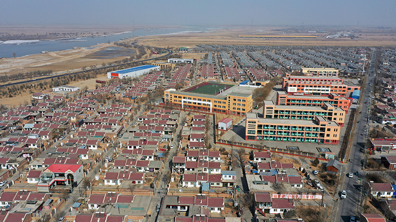 宁夏银川市兴庆区月牙湖乡滨河家园移民村(无人机照片,2021年2月11日摄)。新华社记者 王鹏 摄