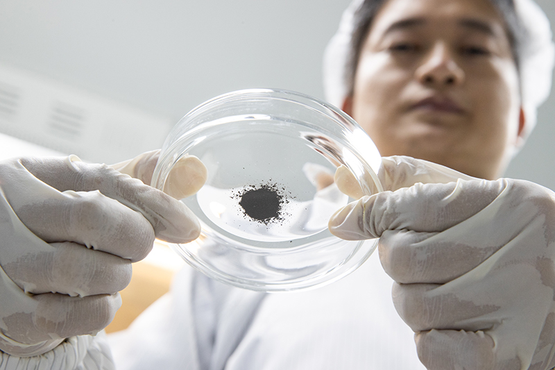 在中科院地质与地球物理研究所月球样品洁净室,田恒次副研究员在处理月球样品(2021年10月15日摄)。新华社记者 金立旺 摄