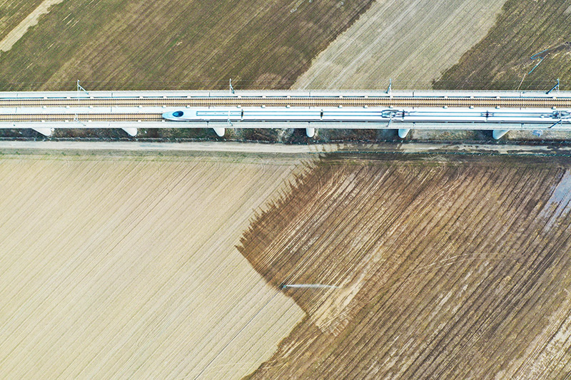 2月22日,高地隙植保机在山西省运城市芮城县新村作业(无人机照片)。新华社记者 柴婷 摄