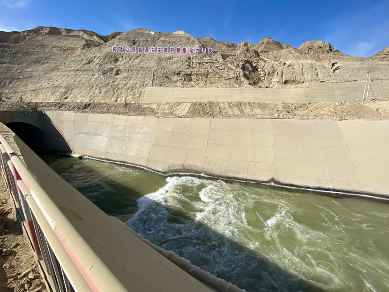 位于青海省海南藏族自治州境内的羊曲水电站部分导流明渠(1月26日摄)。新华社记者 王金金 摄
