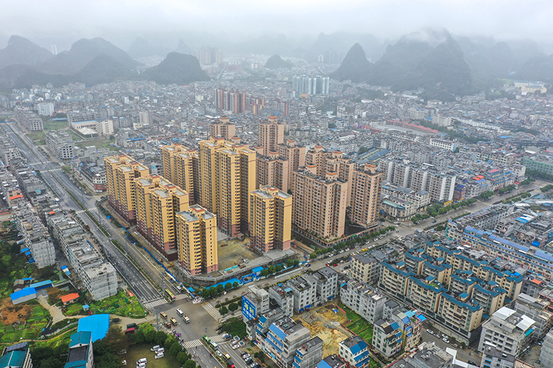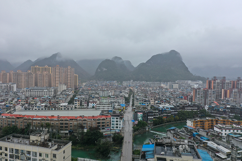 这是2月8日拍摄的广西百色市德保县街景(无人机照片)。新华社记者 曹祎铭 摄