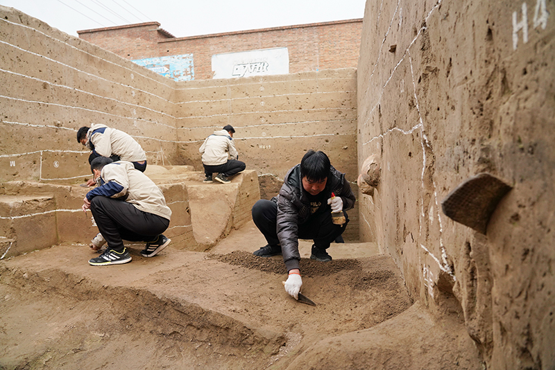 考古队员在河北雄安新区南阳遗址考古发掘现场工作(2021年3月19日摄)。新华社记者 牟宇 摄