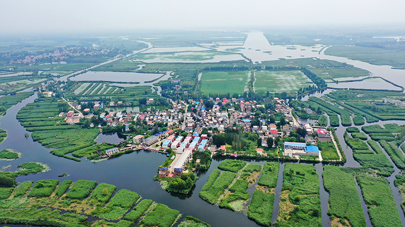 这是白洋淀内的村庄(2021年8月14日摄,无人机照片)。新华社记者 牟宇 摄