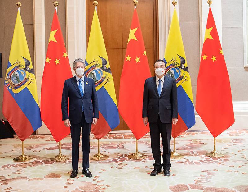 李克强表示,厄瓜多尔是中国在拉美地区重要合作伙伴,中方高度重视发展中厄关系。习近平主席将同总统先生举行会见,推动两国关系向前发展。中方愿同厄方携手努力,加强战略沟通,深化务实合作,推动中厄全面战略伙伴关系不断迈上新台阶。