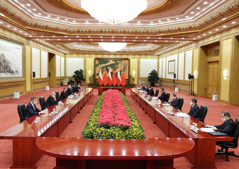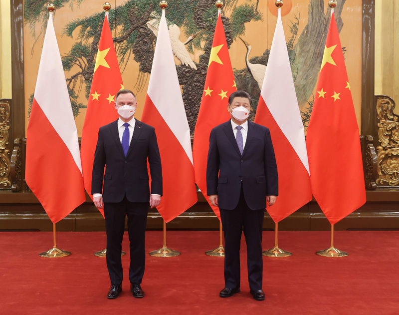 2月6日上午,国家主席习近平在北京人民大会堂会见来华出席北京2022年冬奥会开幕式的波兰总统杜达。新华社记者 丁林 摄