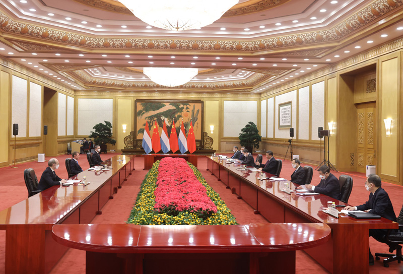2月6日下午,国家主席习近平在北京人民大会堂会见来华出席北京2022年冬奥会开幕式的卢森堡大公亨利。新华社记者 丁林 摄